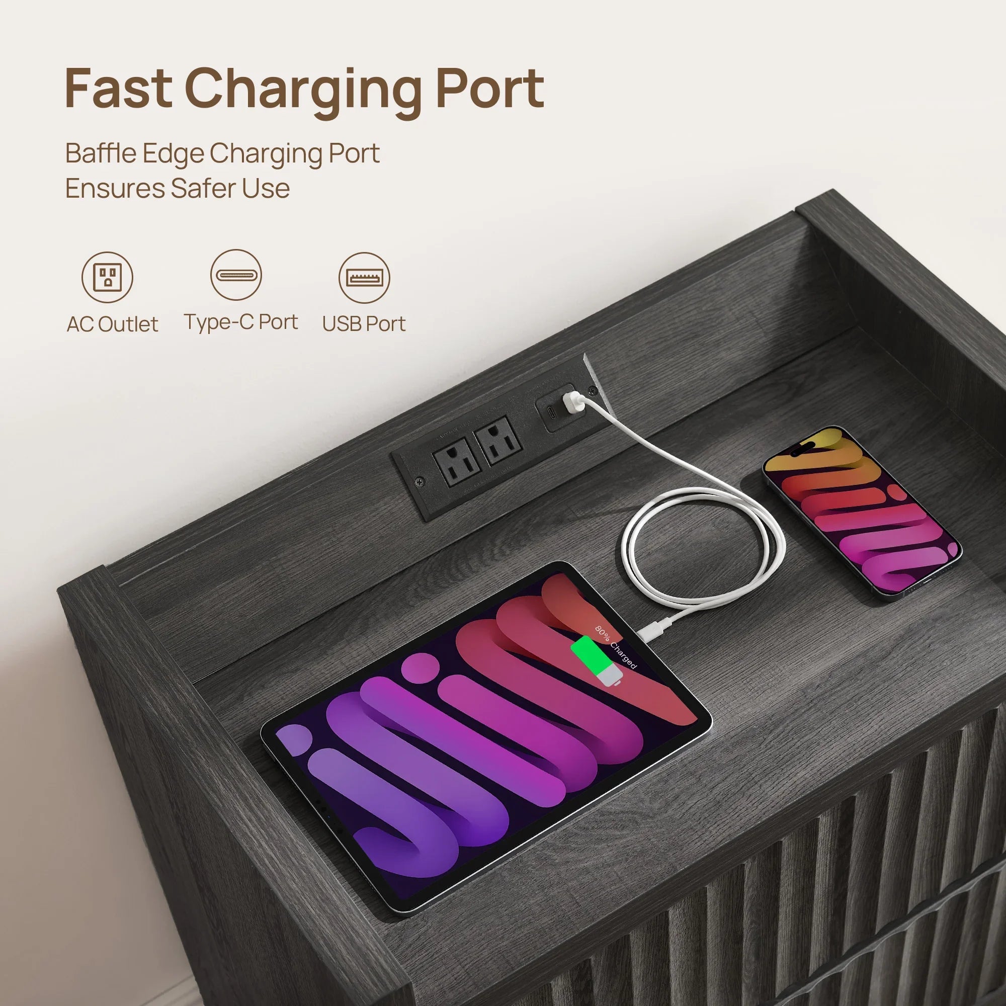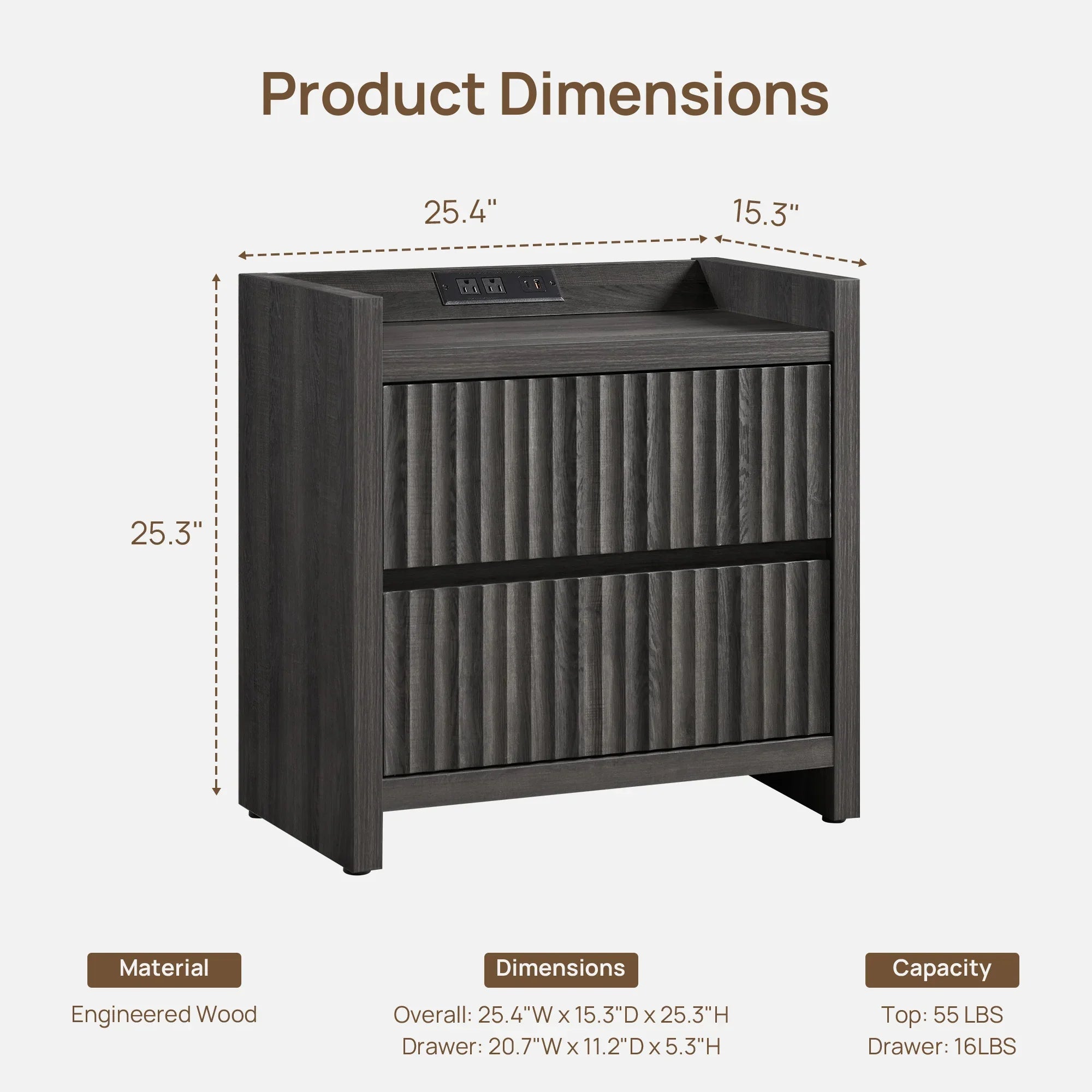 Prelude Night Table with Drawers and Charger