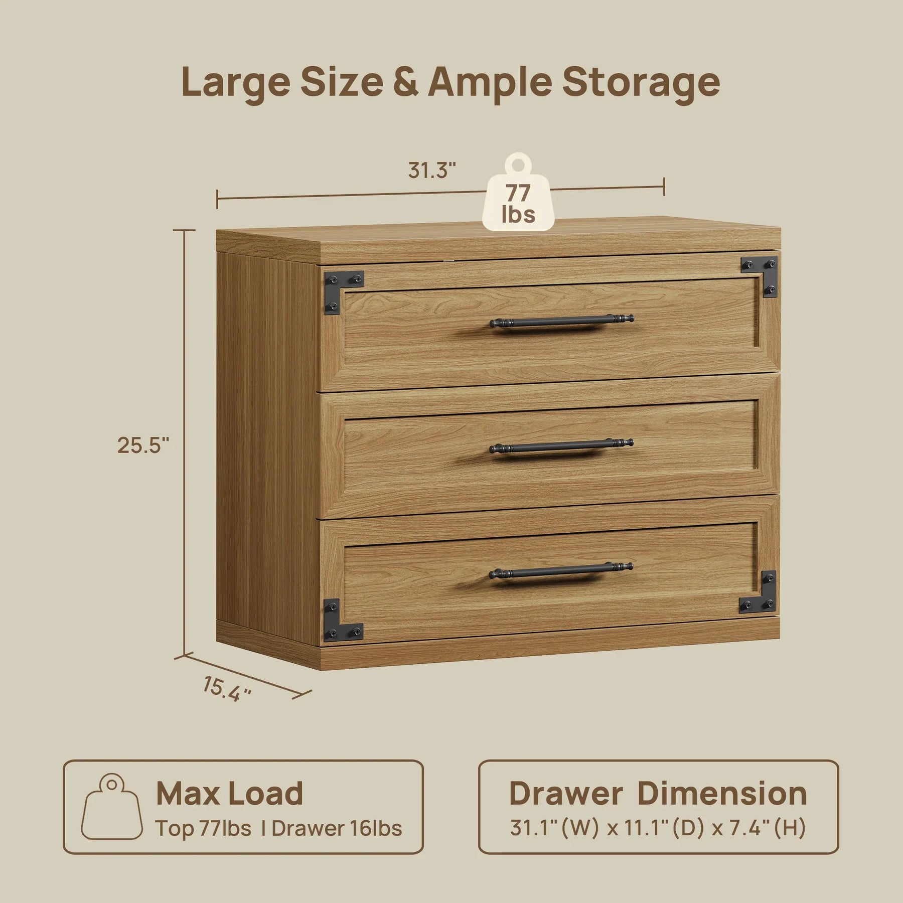 25.5" H X 31.3" W X 15.4" D