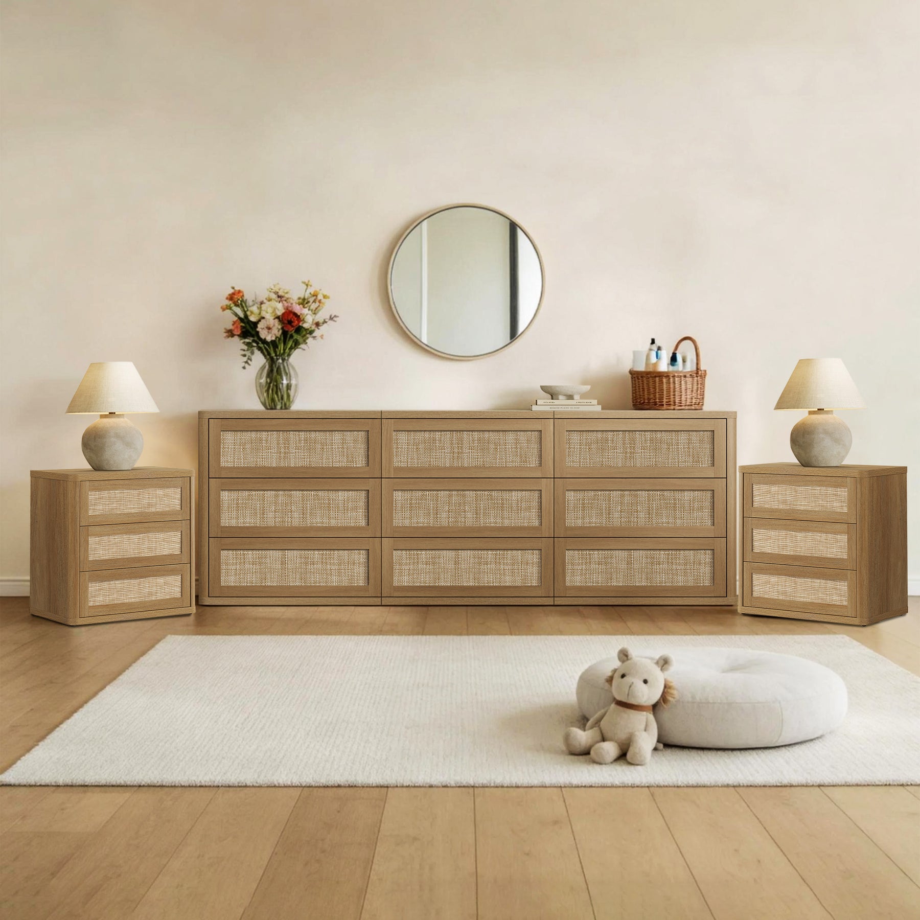 Zura Modular 9-Drawer Chest and Nightstands Set