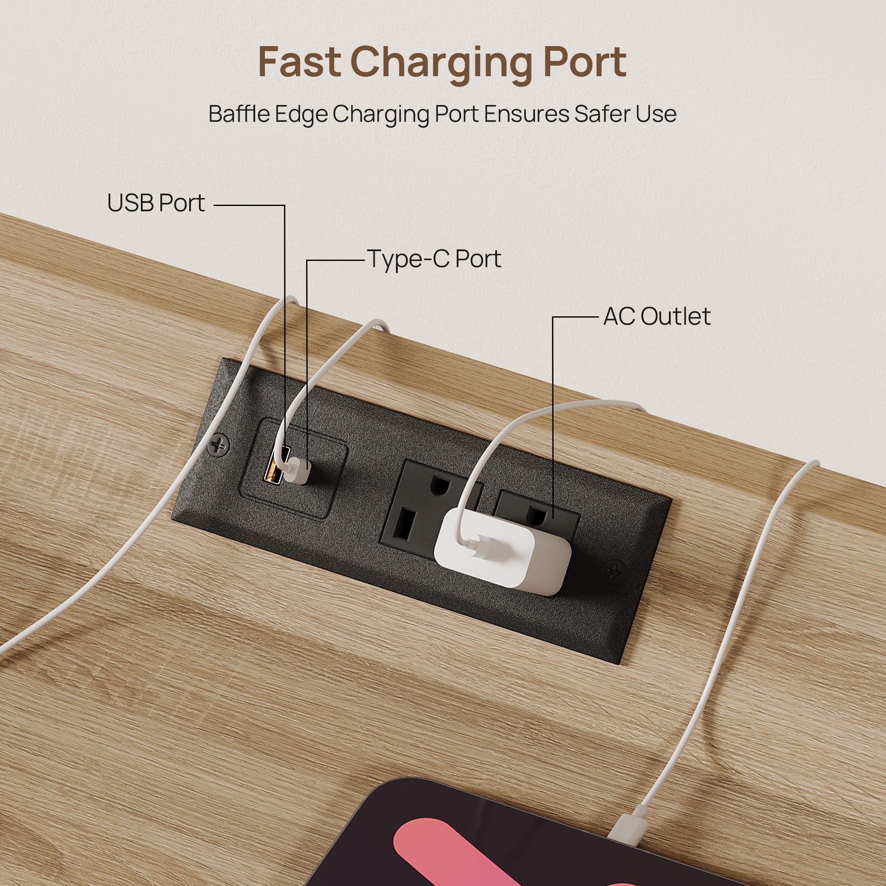 Prelude 3-Drawer Nightstand, Charging Station