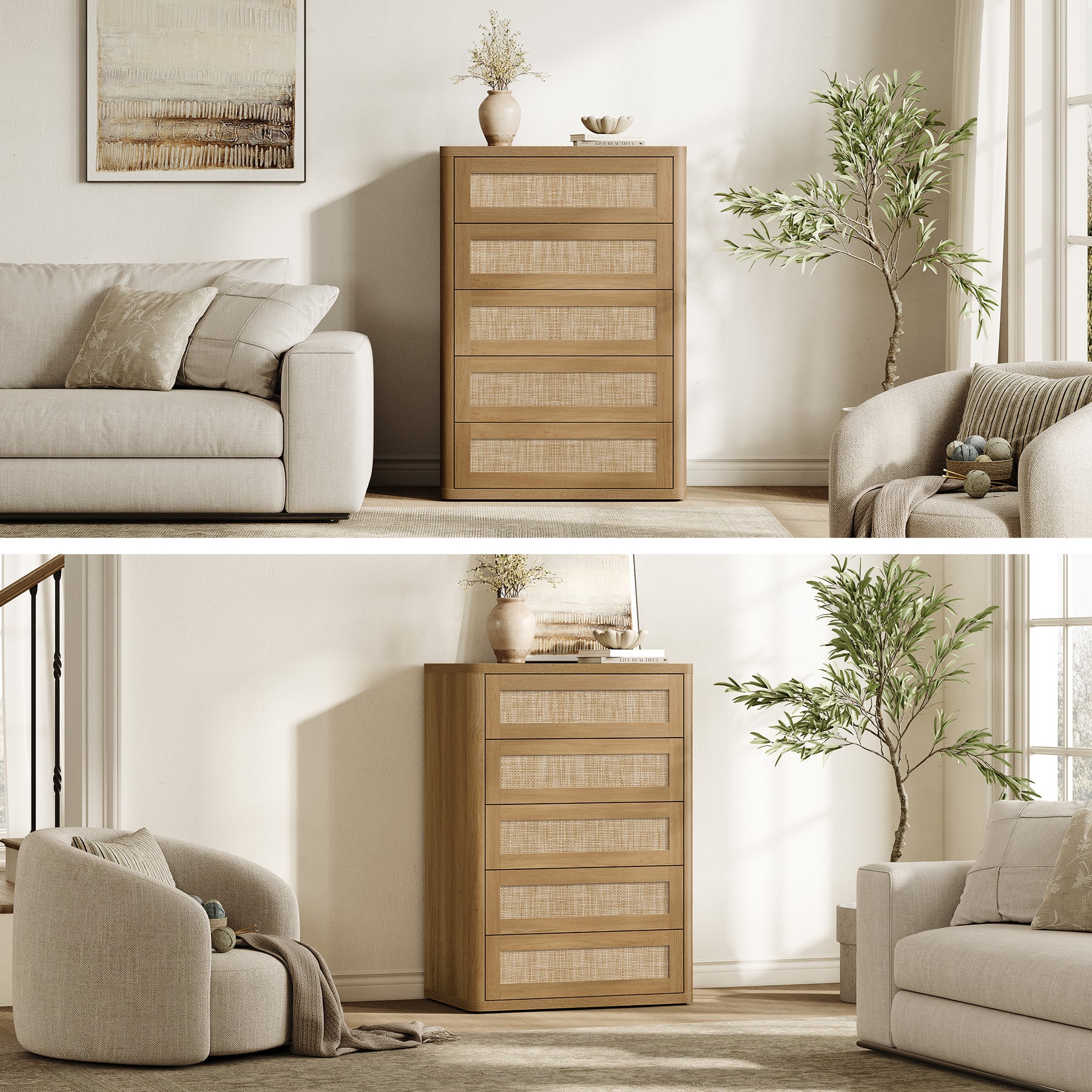 Zura Rattan Dresser, 5 Drawers