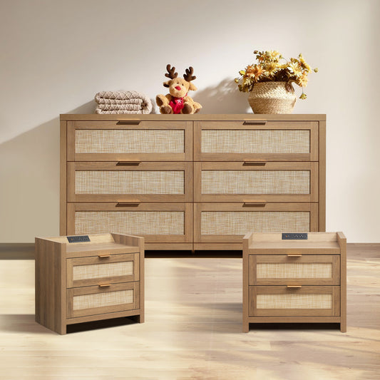 Zura Rattan Dresser and 3-Drawer Nightstand Set