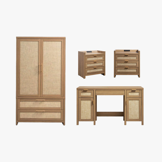 Zura Large-Size Bedroom Sets, Rattan Style