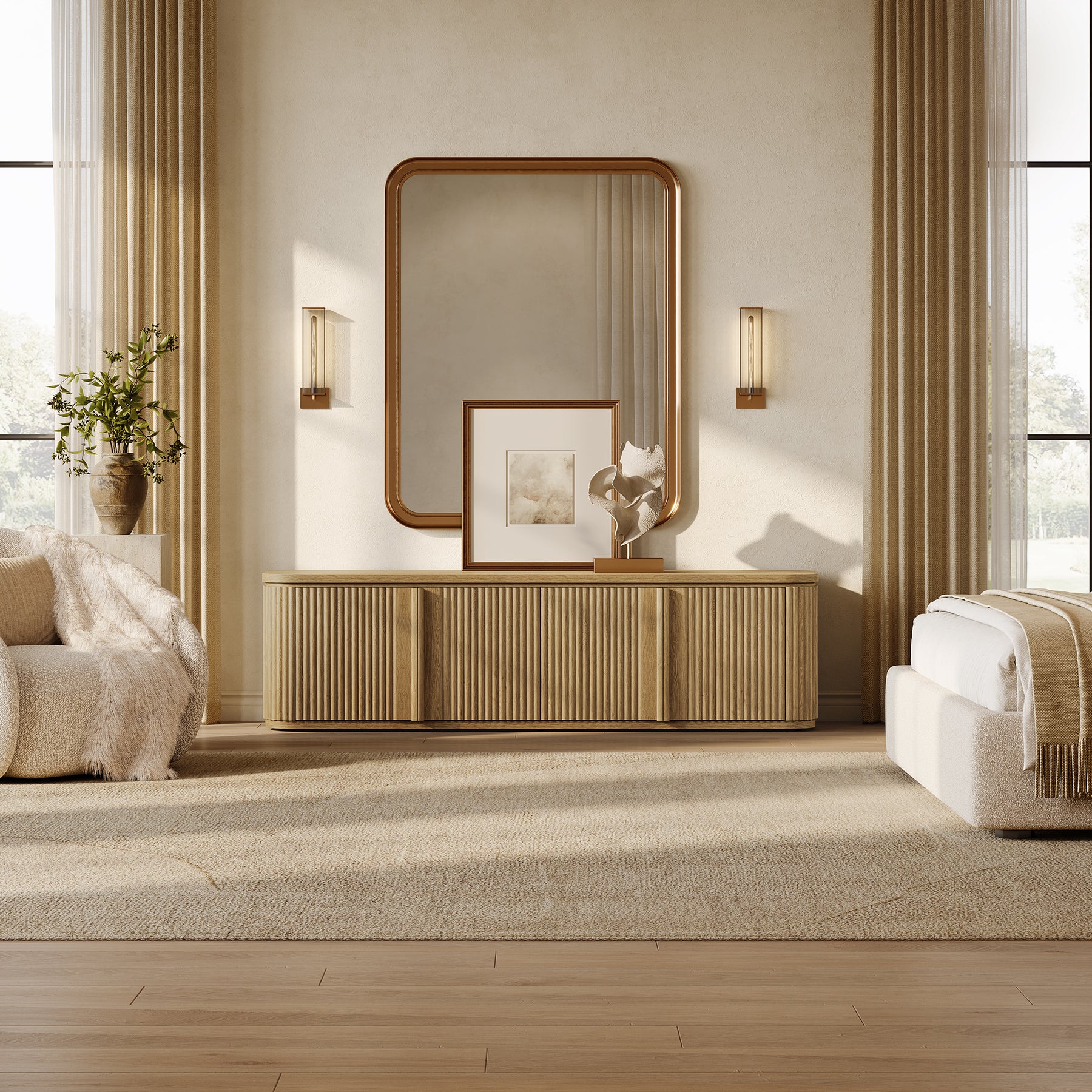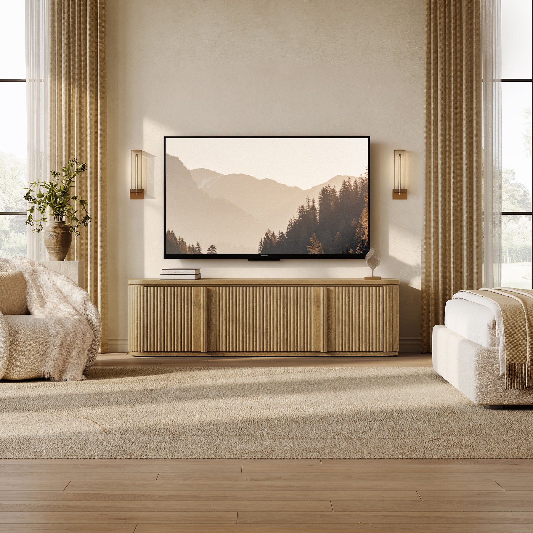 Ripple TV Stand for TV up to 65Inch, 4 Doors