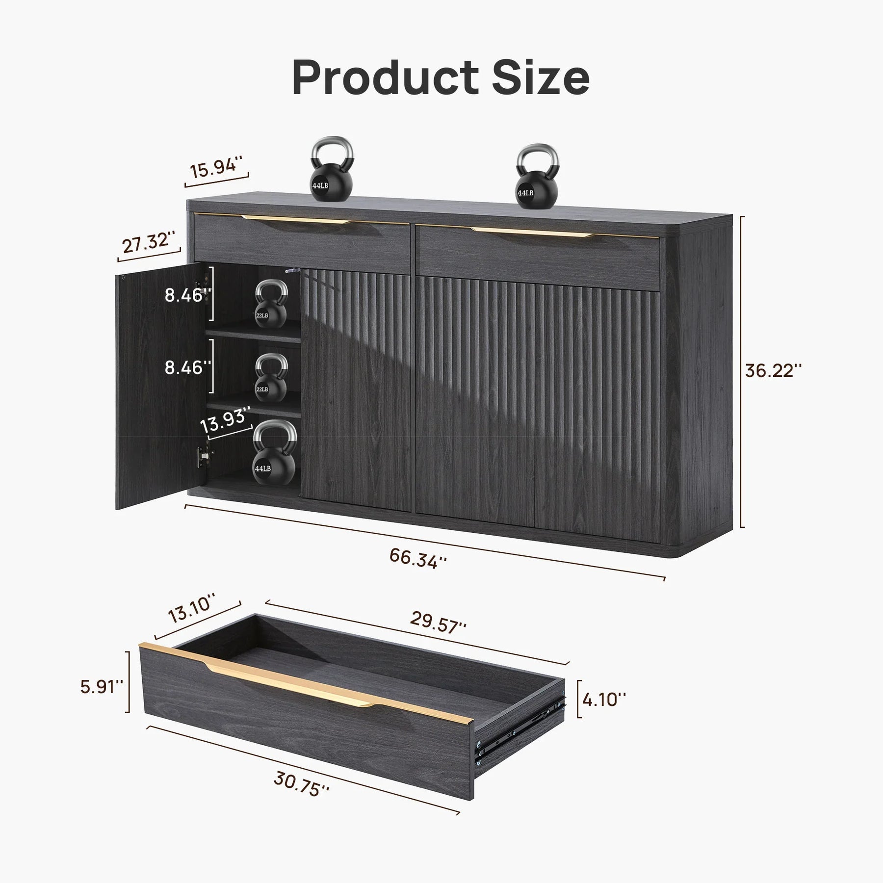 36.22" H X 66.34" W X 15.94" D