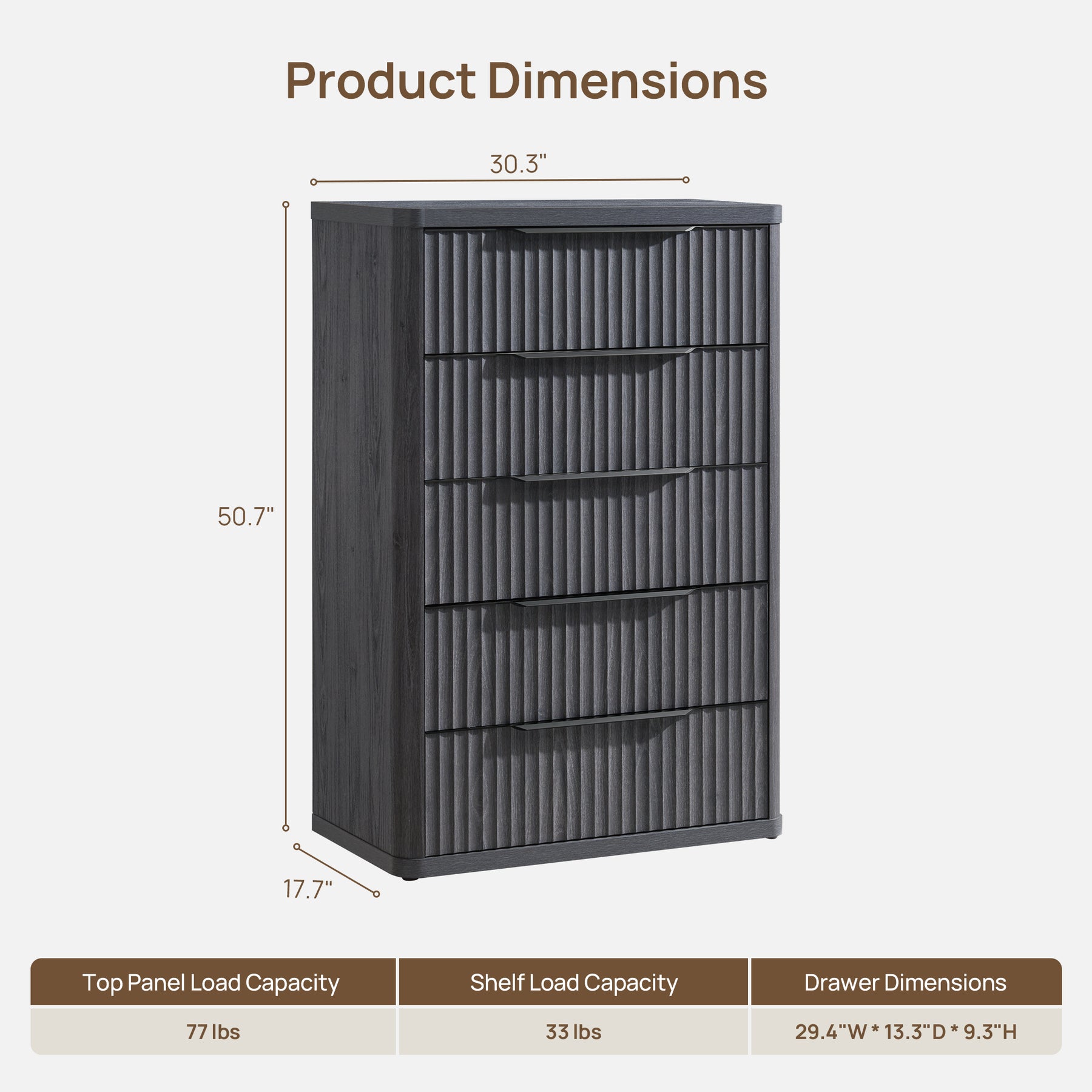 Cas Modern 5-Drawer Dresser, 50.7 Inches Tall