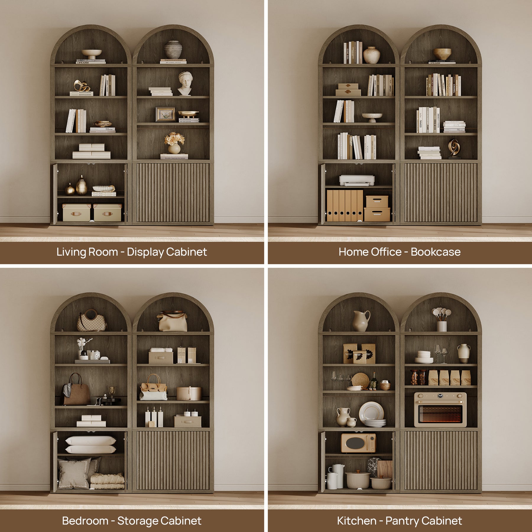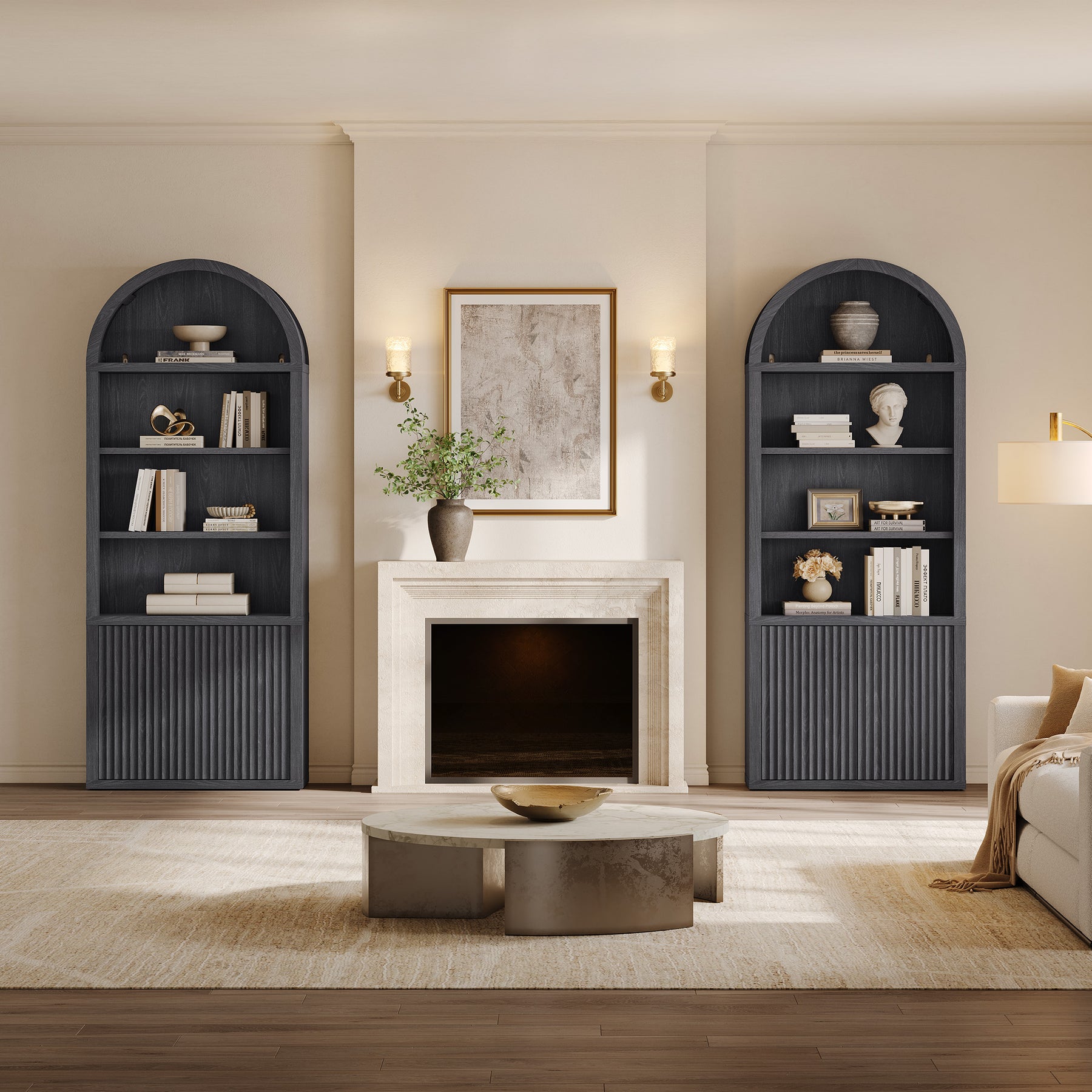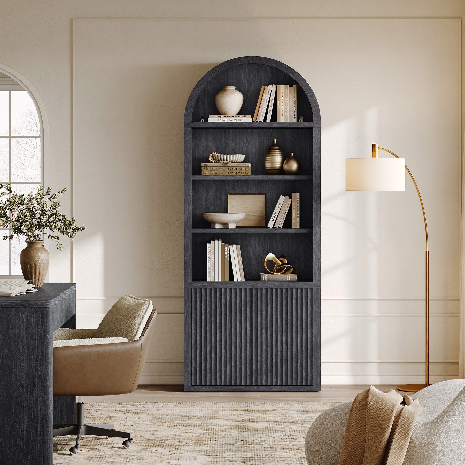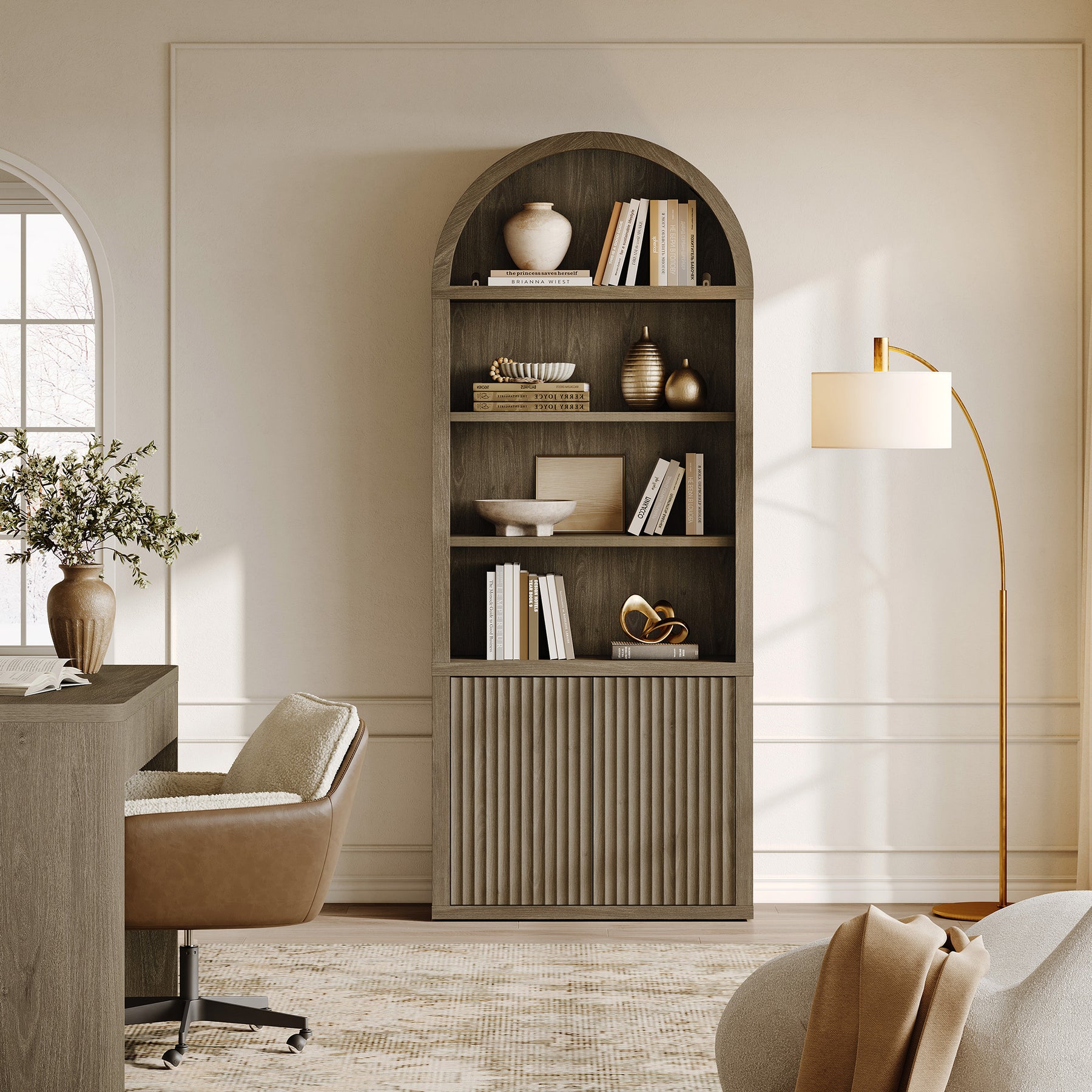 Cas Fluted 2-Door Bookcase, Arched Top
