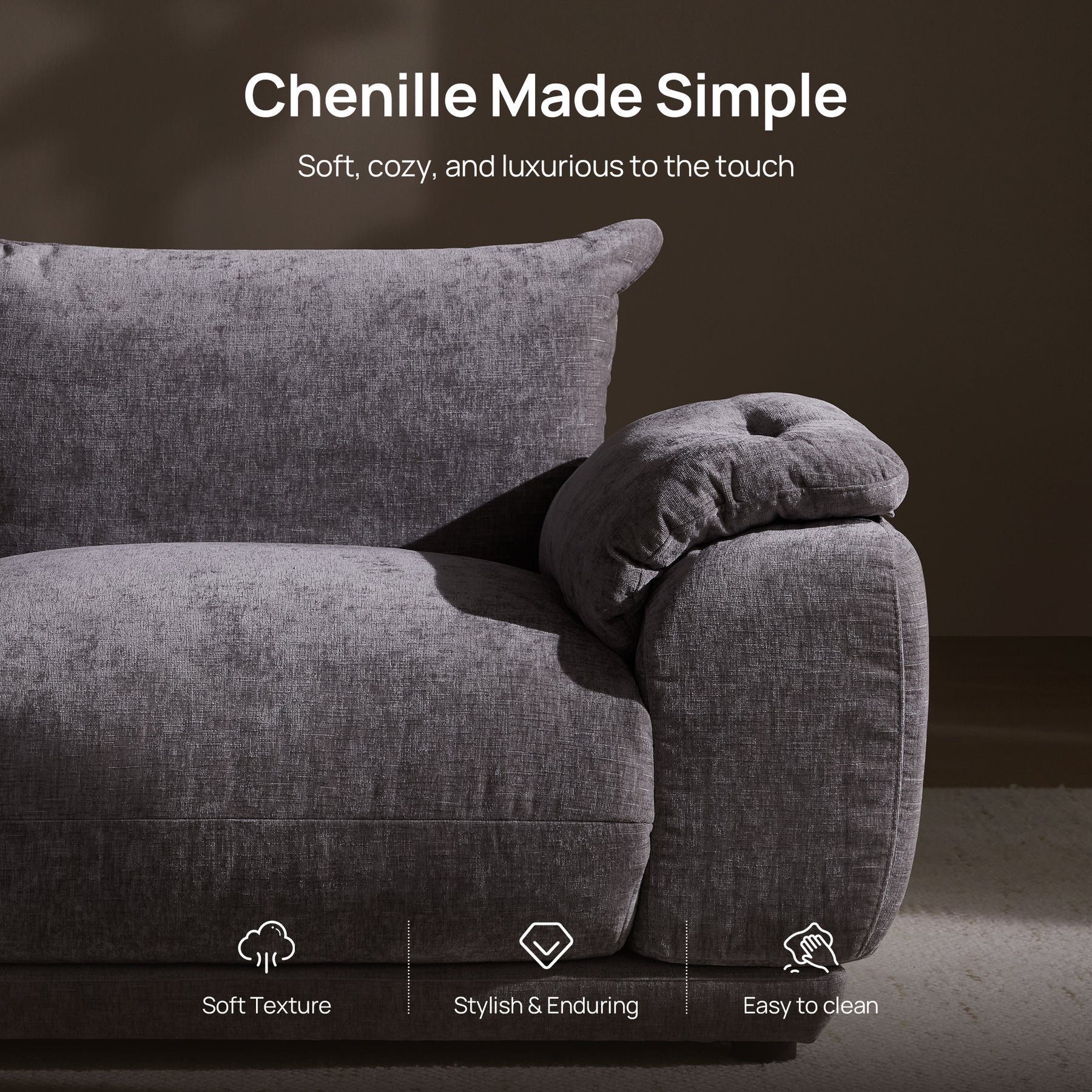 Noor Sectional 3 Seater Couch, Deep Seat