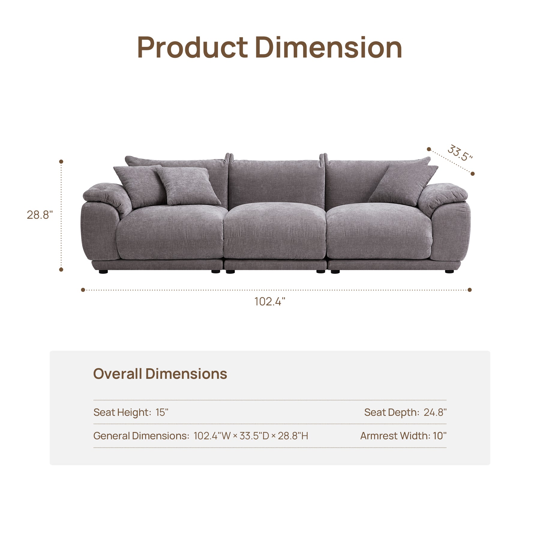 28.8" H X 102.4" W X 33.5" D