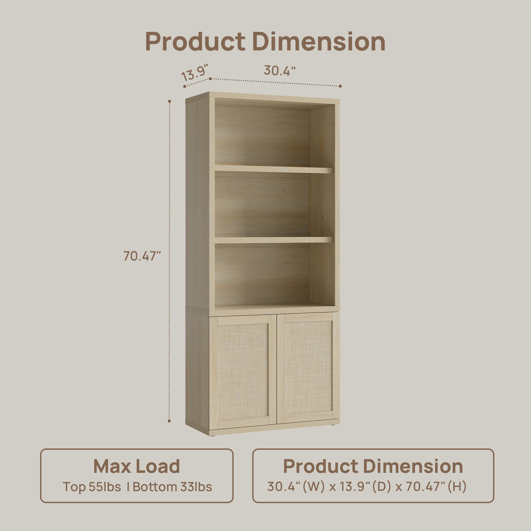 70.47" H X 30.4" W X 13.9" D