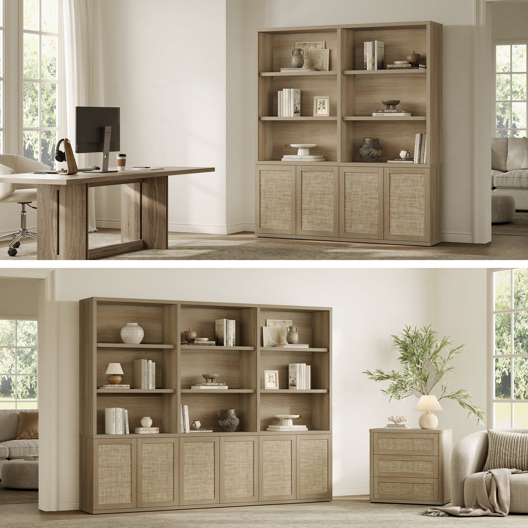 Zura Rattan Bookcase, 71 Inches Tall