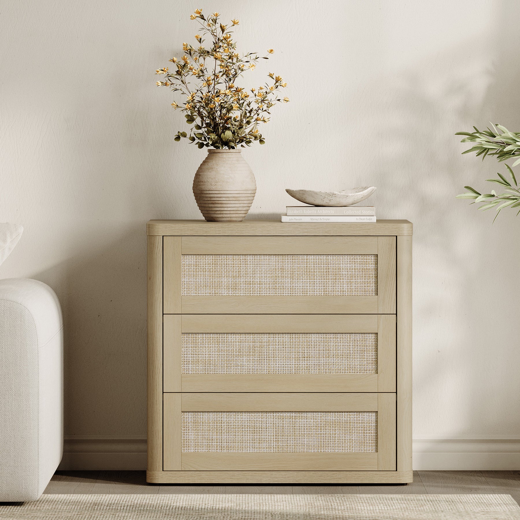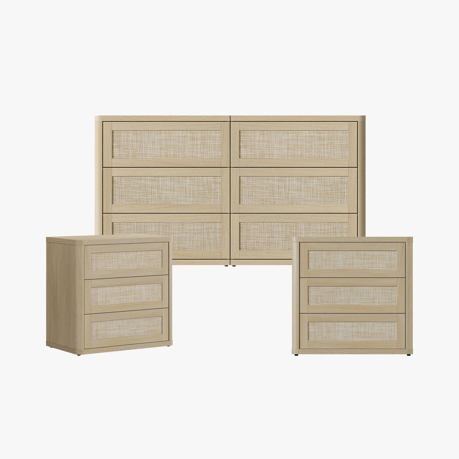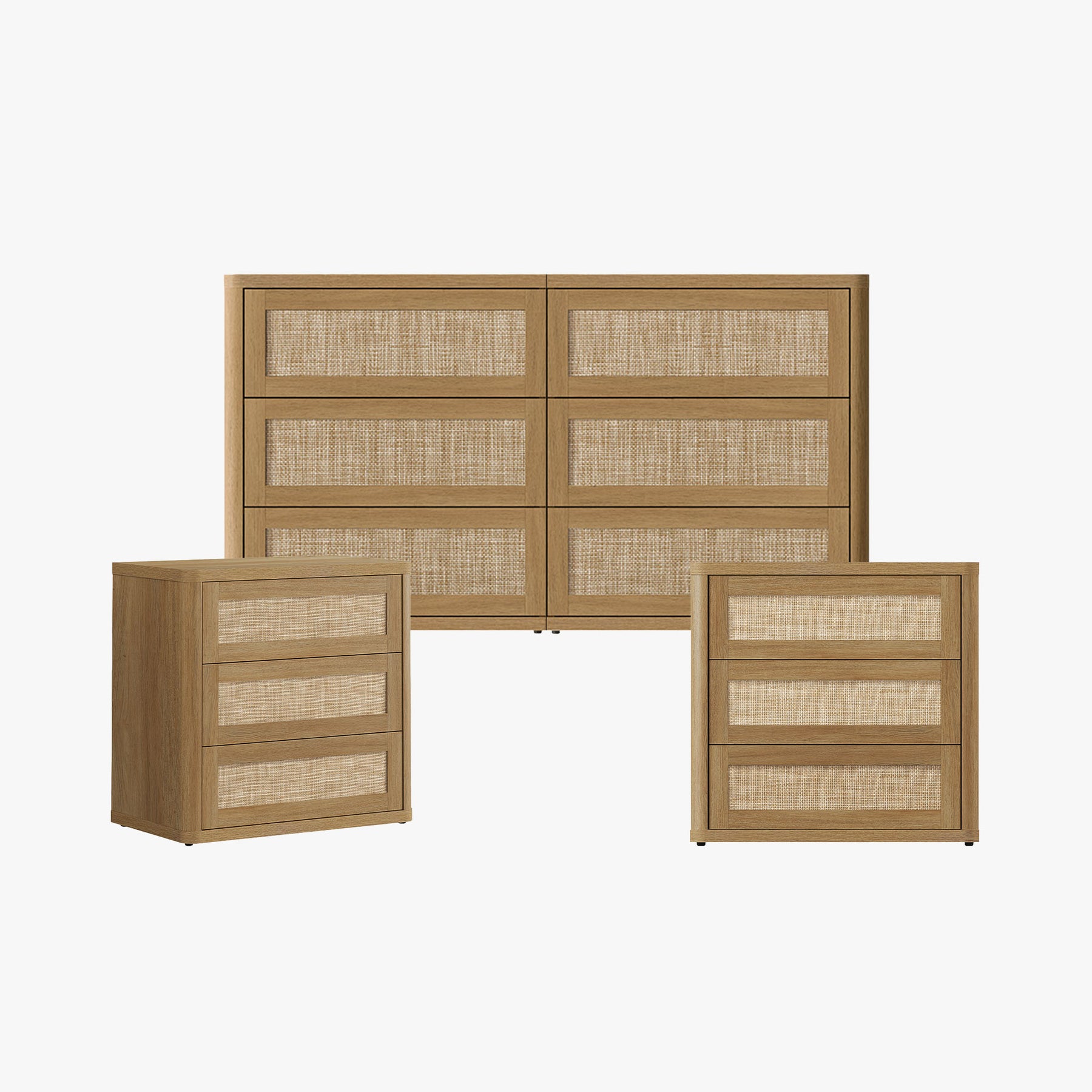 Zura Sectional Rattan Dresser and 3-Drawer Nightstand Set