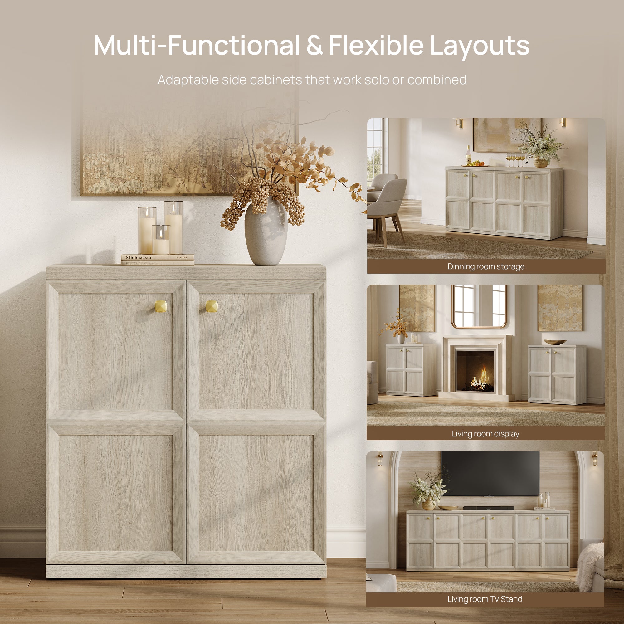 SICOTAS 33.7"W Sideboard Buffet Cabinet Set-WM